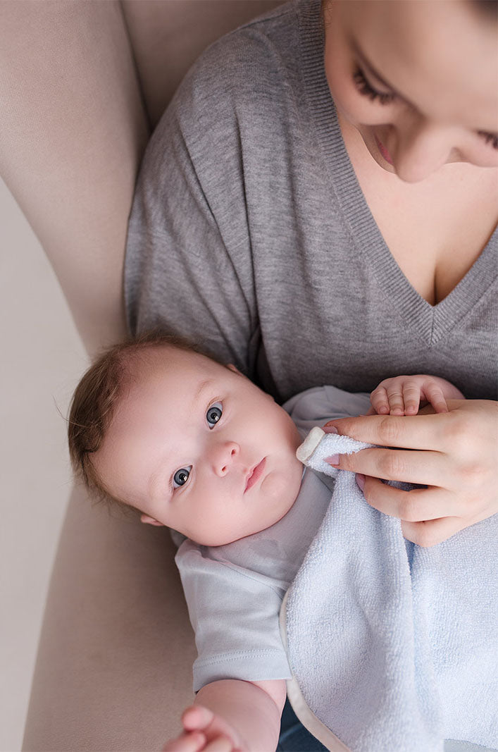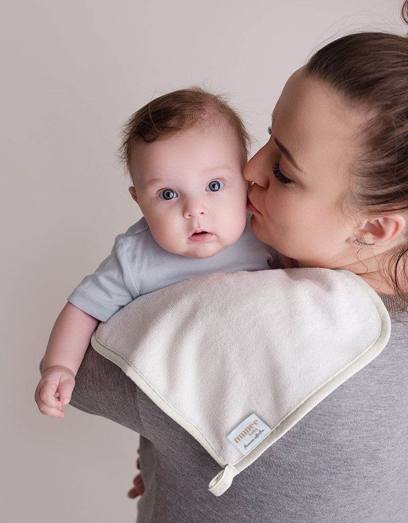 Mini asciugamano in morbidissima spugna di bambù naturale, pensato per rendere la vita da mamma molto più semplice.